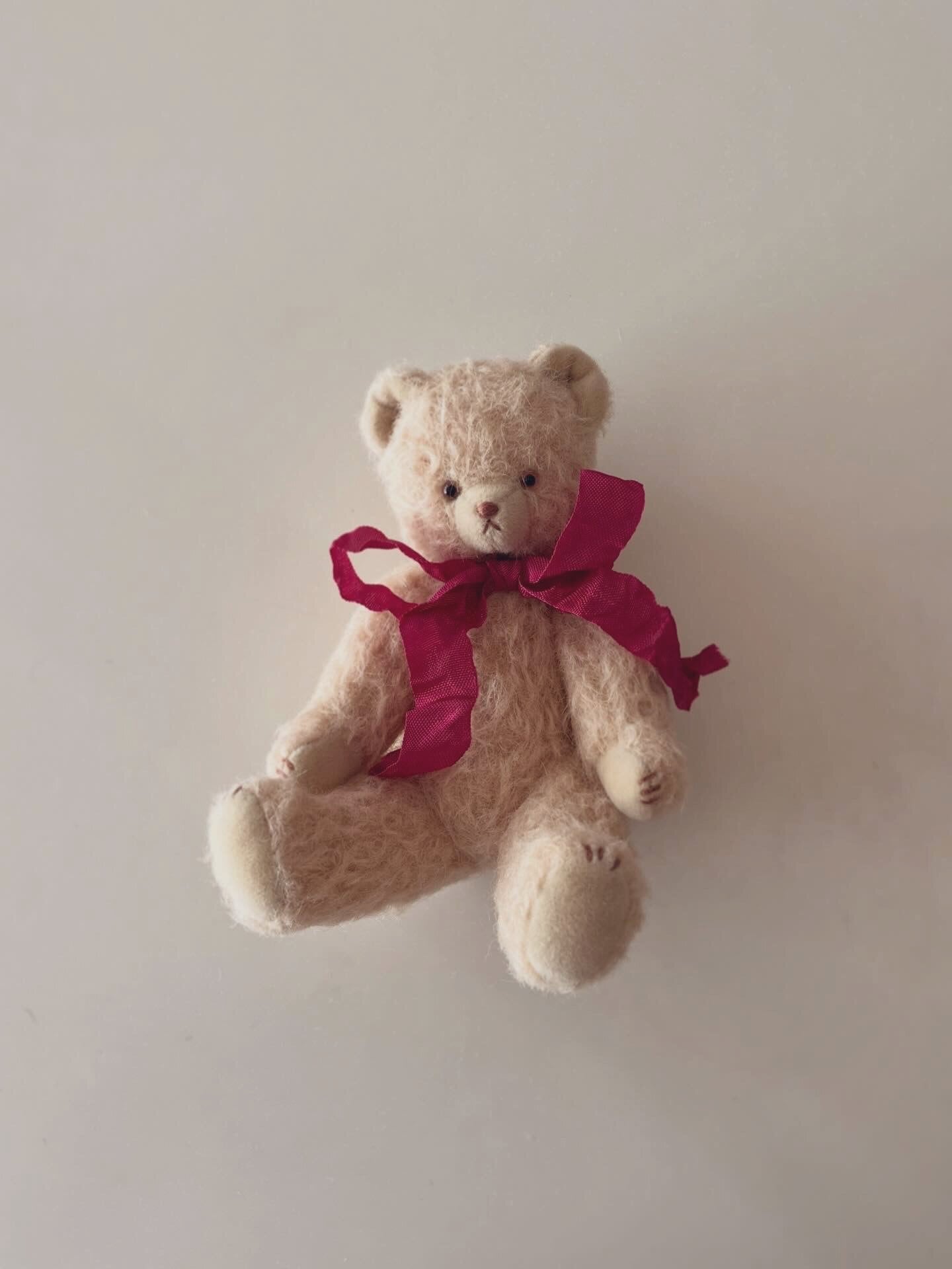 本作品は、伝統的なテディベアの制作手法で作った手縫い・5ジョイント(手足首が動きます)のくまのぬいぐるみとなります。